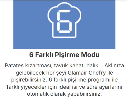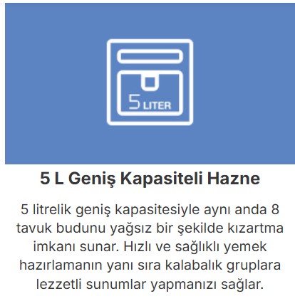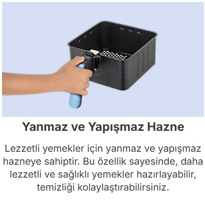 Sıcak hava dolaşımı sayesinde yiyeceklerin dengeli bir şekilde pişmesini sağlar ve dışının kıtır, içinin ise yumuşak olmasını mümkün kılar.