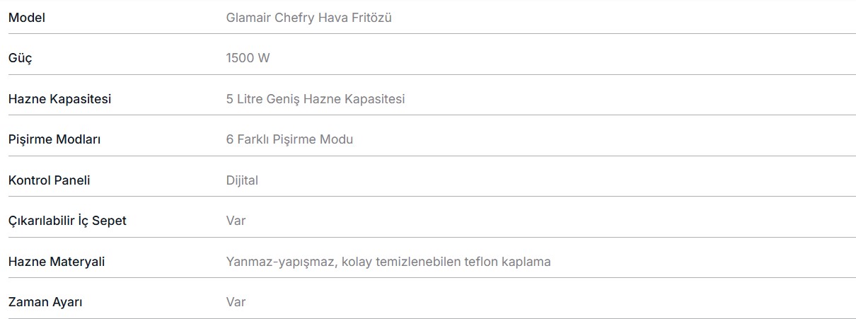 Fakir Glamair Chefry Sıcak Hava Fritözü, modern mutfaklarda sağlıklı yemek pişirme yöntemlerinden biri olarak öne çıkmaktadır. Geleneksel kızartma yöntemlerine göre daha az yağ kullanarak yiyecekleri kızartır veya pişirir.