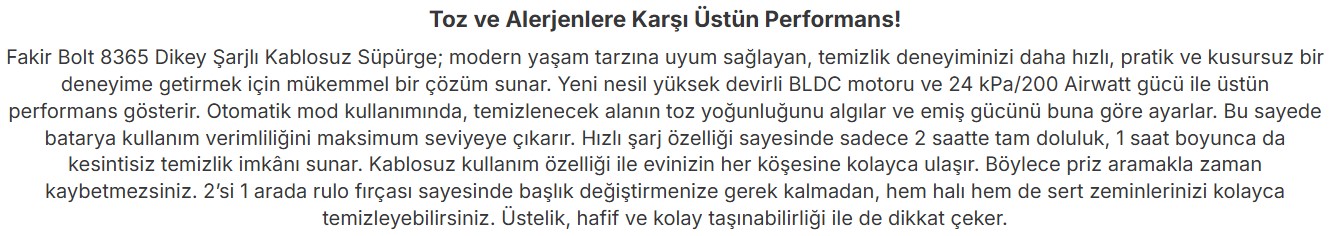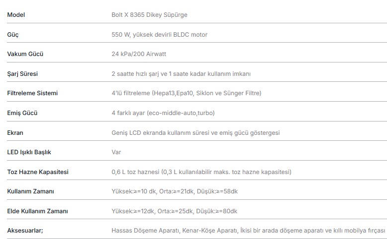 Fakir Elektrikli Süpürge Dikey Şarjlı Bolt X 8365