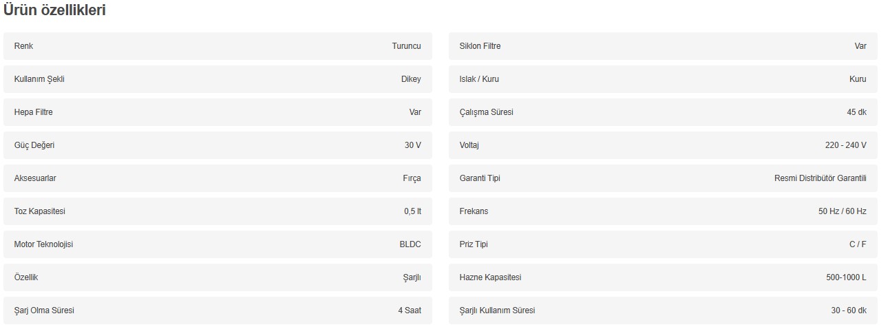 FAKİR INOVATOR X 7269 DİKEY ŞARJLI SÜPÜRGE ÖZELLİKLERİ