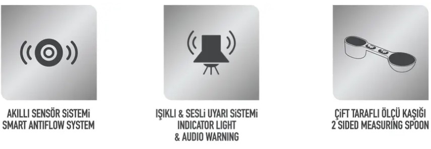 Aynı anda 4 fincan kahve yapmanıza olanak sağlayan Köpüklüm Türk Kahvesi Makinesi, taşmayı önleyen akıllı sensör sistemi sayesinde güvenli kullanım sunarken sesli ve ışıklı uyarı sistemleri ile kahveniz hazır olduğunda uyarı verir