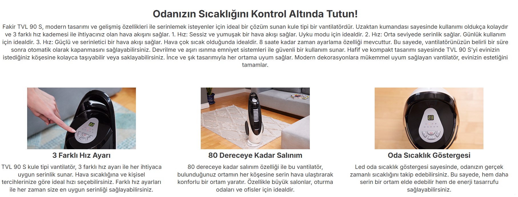 Fakir Vantilatör Kule Tipi Tvl 90 S