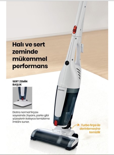 * Dik kullanım (HALI) : Turbo fırça ile derinlemesine temizlik