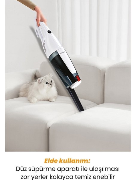 * Elde kullanım: Düz süpürme aparatı ile ulaşılması zor yerler kolayca temizlenebilir