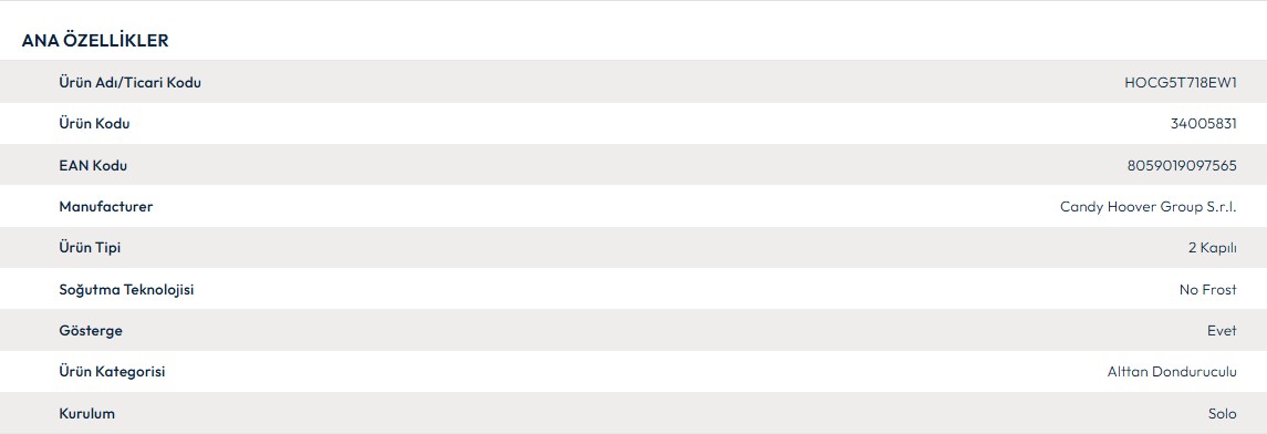 Hoover Buzdolabı 34005831 Hocg5t718ew1 Beyaz