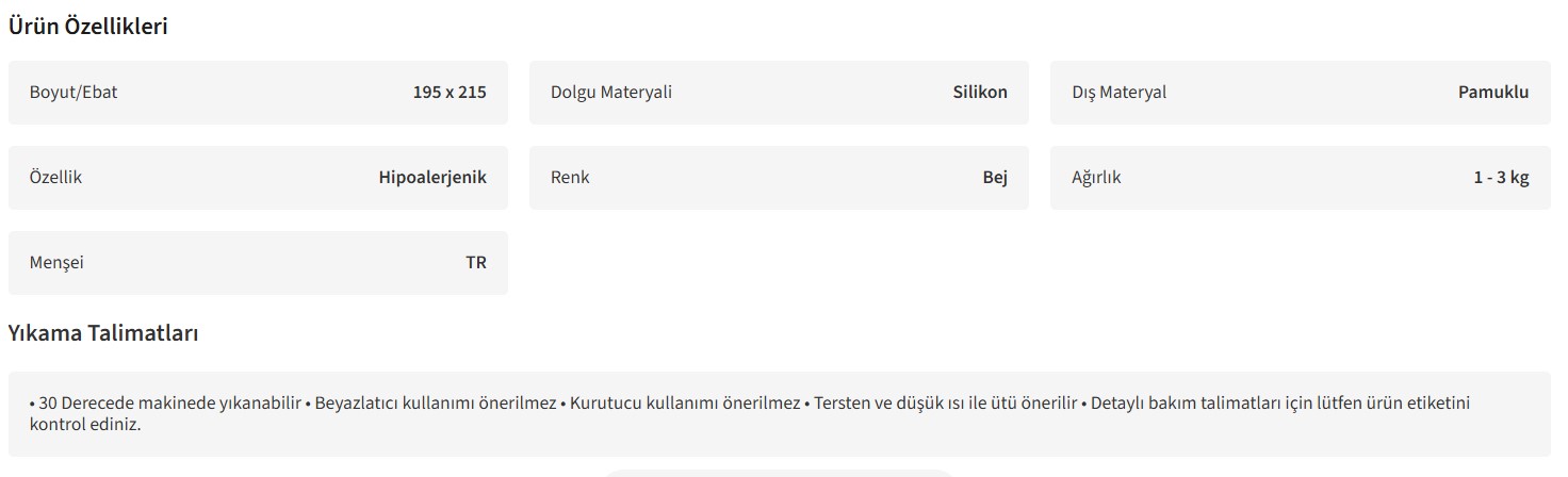 - 195x215 cm boyutlarındaki geniş tasarımı, çift kişilik yataklar için mükemmel uyum ve rahatlık sunar.