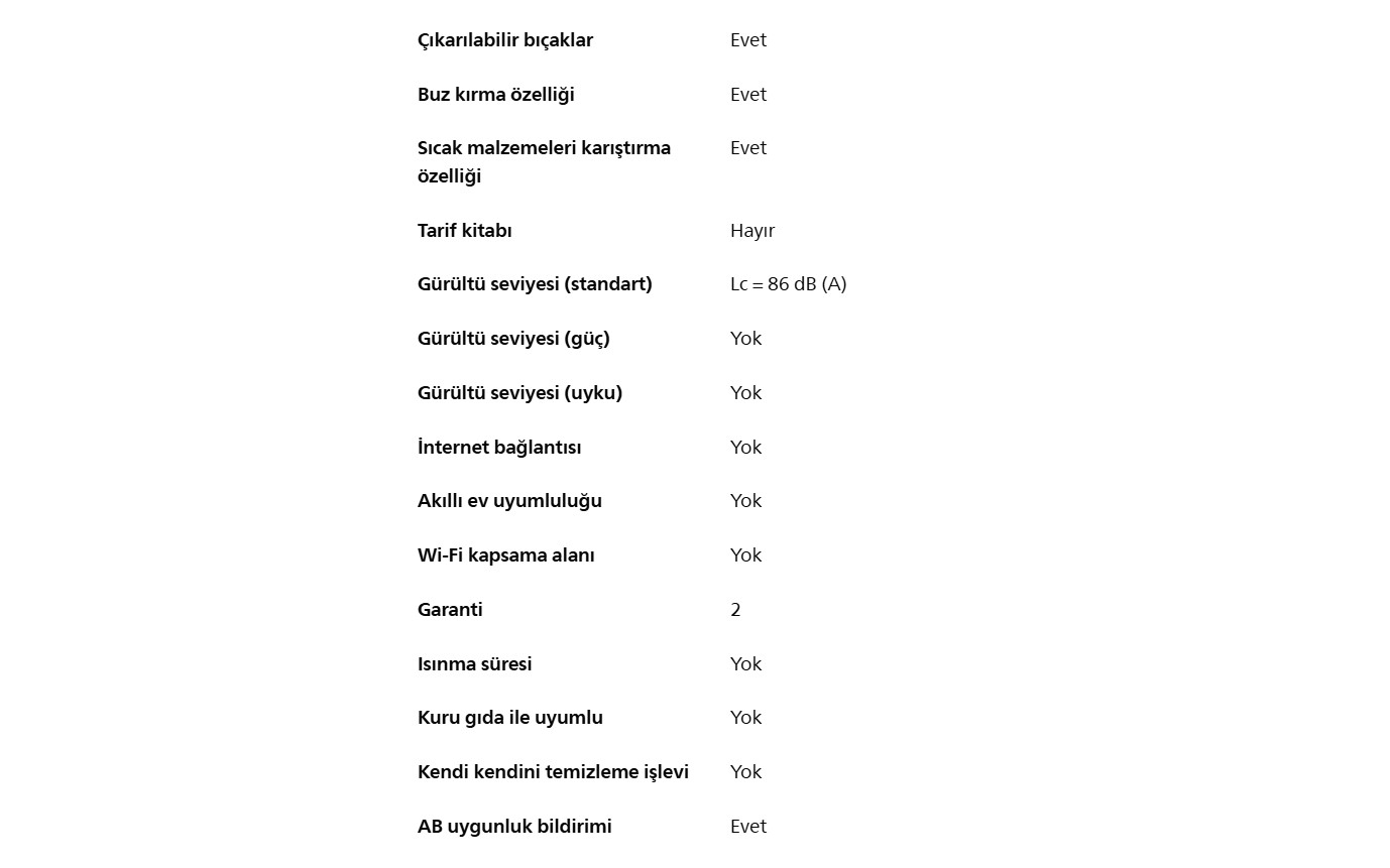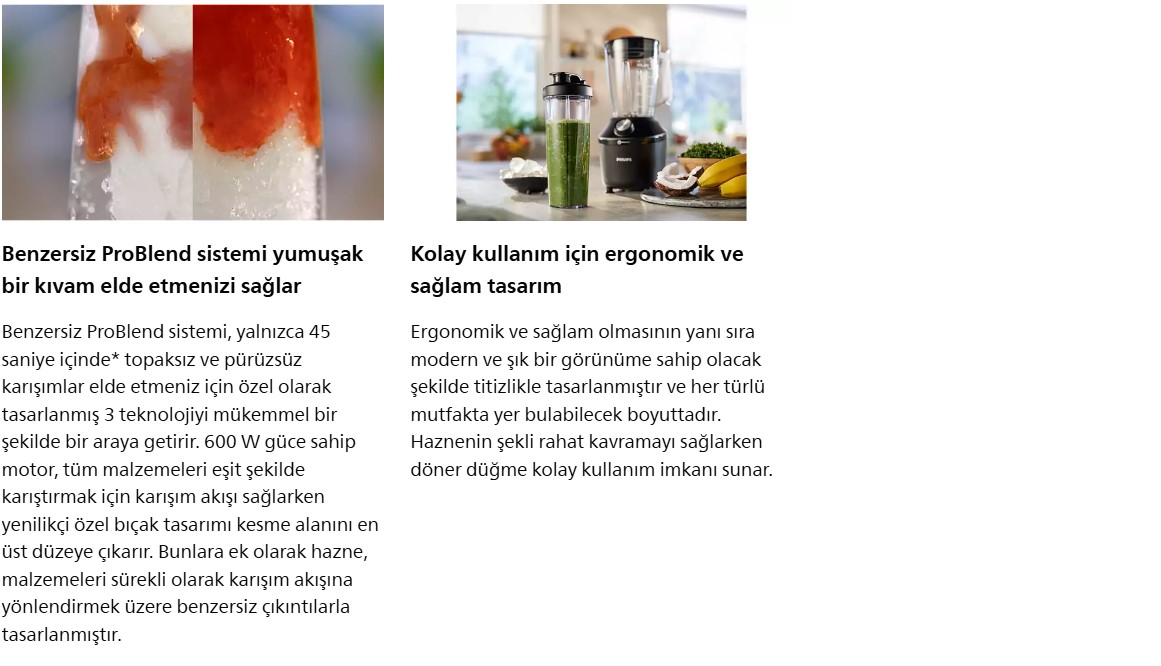 Tüm malzemeleri almak ve hatta buz kırmak için ihtiyaç duyduğunuz 600 W güç ve bıçak performansıyla günlük karıştırma işlemlerinizi iyileştirmek üzere tasarlanmıştır. Minimum çabayla ve çok kısa sürede mükemmel bir kıvam sağlar.