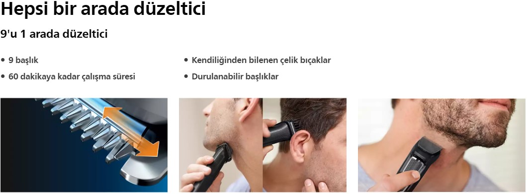 9 premium başlığa sahip bu düzeltici sayesinde tam olarak istediğiniz sakal/bıyık ve saç stiline sahip olun.
