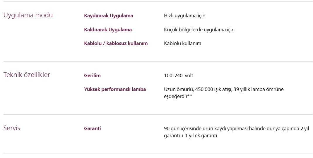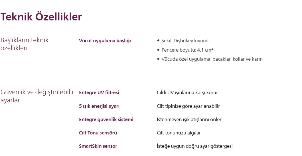 Özel olarak tasarlanmış uygulama başlıkları, altı ay boyunca tüyden arınmış pürüzsüz cilde giden yolda etkili uygulama için vücudunuzun her bölgesinde tüm kıvrımlara mükemmel uyum sağlayacak şekilde üretilmiştir*.