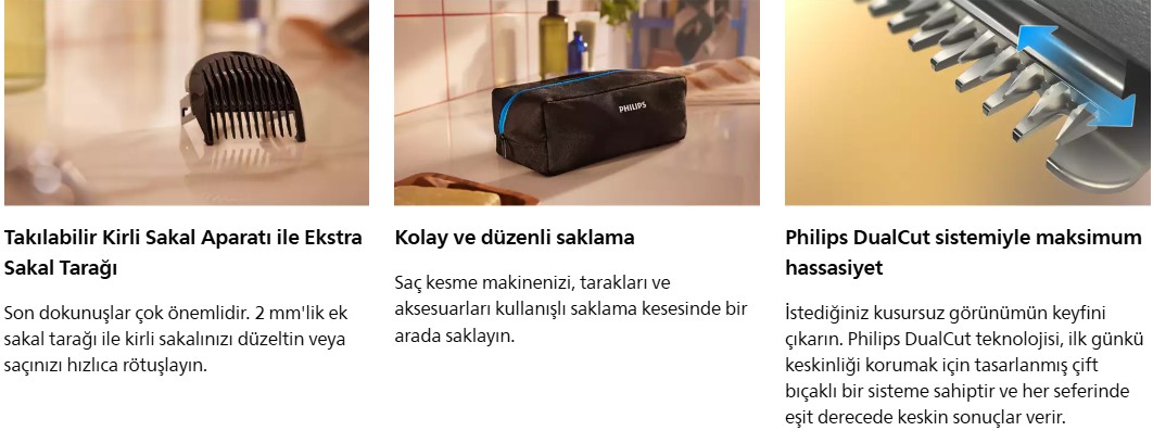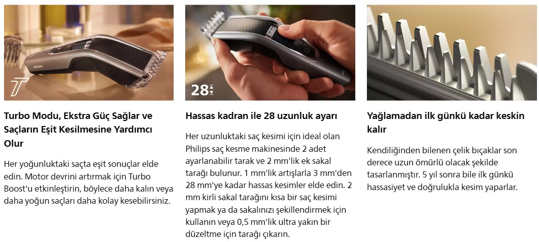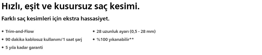 Philips 5000 Serisi Saç Kesme Makinesi; hızlı, eşit ve kusursuz bir saç kesimi sağlar. 28 farklı uzunluk ayarı, T