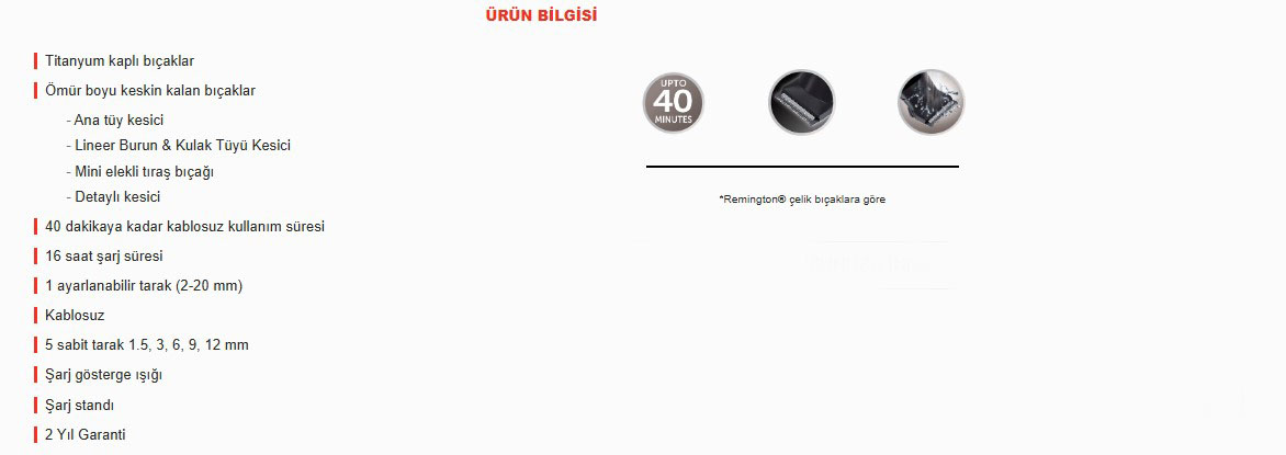 Remington'ın kendi kendini bileyleyen Titanyum kaplı bıçakları, çelik bıçaklardan %300 daha serttir ve her seferinde pürüzsüz bir kesim sağlar; ayrıca zamanla köreleceğinden endişe endişelenmeye gerek yoktur.