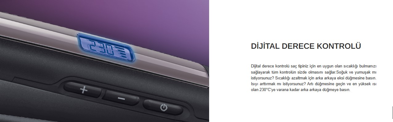 On farklı sıcaklık ayarı, 150°C - 235°C aralığında saç tipinize en uygun sıcaklığı seçmenize olanak tanır ve bu sıcaklığa sadece 15 saniyede ulaştığı için durup beklemeniz gerekmez.
