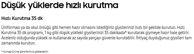 * IEC 61121:2013 standartlarına göre / 8 kg çamaşır yıkama yükü / Isı Pompası fonksiyonu açıkken Kullanıma Hazır Pamuklu Kurutma