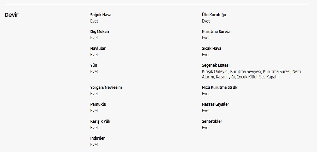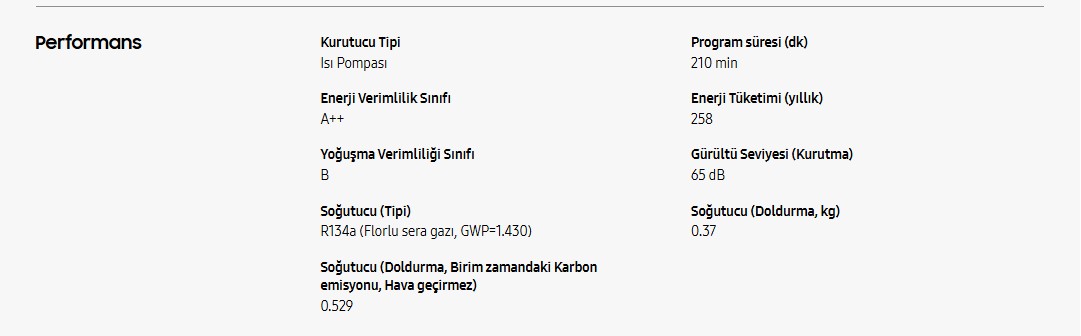 Programındaki DV80F5E4HGW modeli ile Isı Pompası fonksiyonu kapalı DV80H4100CW modeli karşılaştırılmıştır.