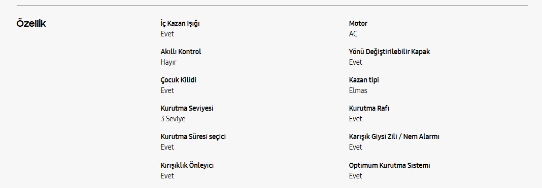 Samsung Çamaşır Kurutma Makinesi Dv90cgc0a0aeah 9kg