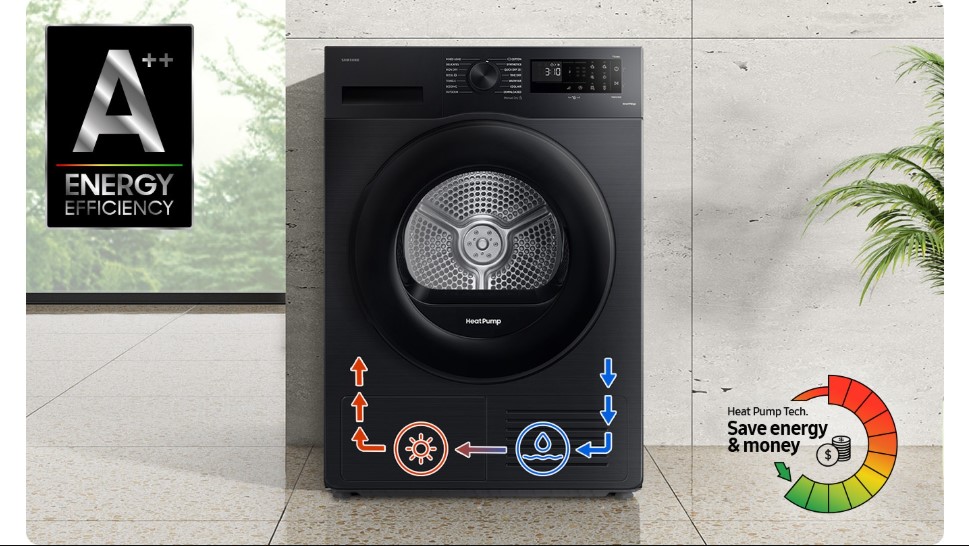 Daha az elektrik kullanarak tasarruf edin*. Isı pompası teknolojisiyle çamaşırlarınızı daha az enerjiyle ve daha düşük maliyetle hassas bir şekilde kurutun.