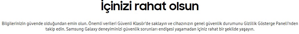 Bilgilerinizin güvende olduğundan emin olun. Önemli verileri Güvenli Klasör’de saklayın ve cihazınızın genel güvenlik durumunu Gizlilik Gösterge Paneli’nden takip edin. Samsung Galaxy deneyiminizi güvenlik sorunları endişesi yaşamadan içiniz rahat bir şekilde yaşayın.