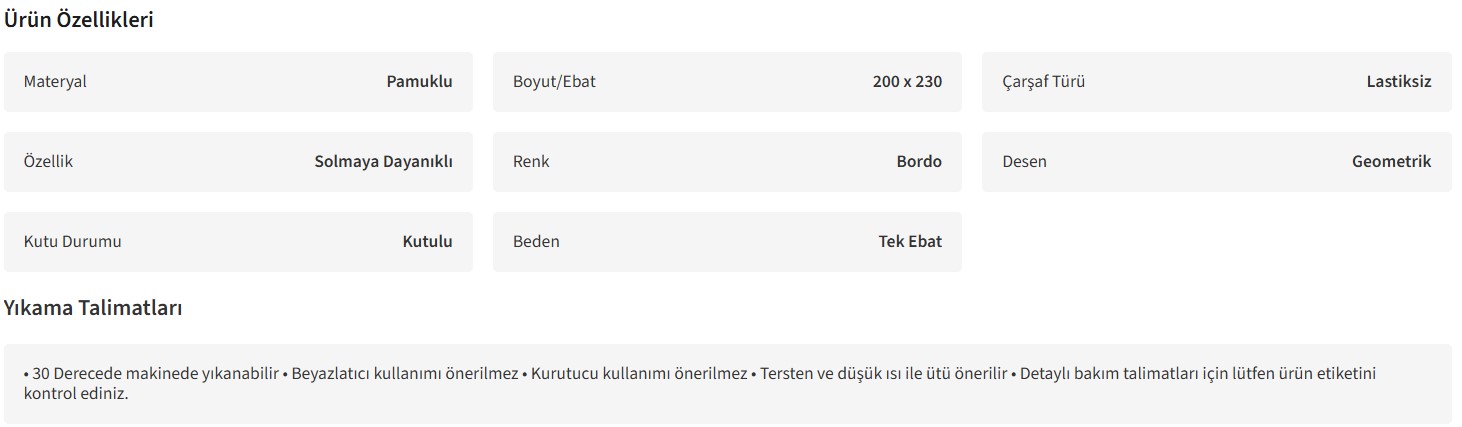 Yastık Kılıfı: 50x70 cm 2 Adet"