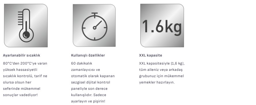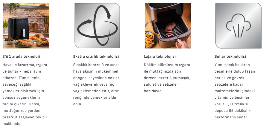 Çok yönlü 3'ü 1 arada çözüm: Hava ile Kızartma, Izgara ve Buharda Pişirme