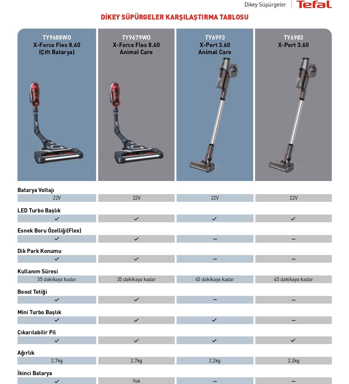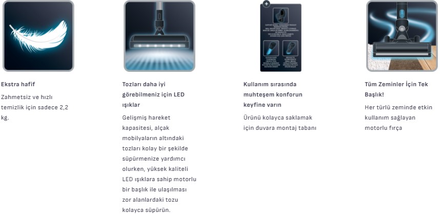 TY6983TR X-Pert 3.60 Kablosuz Dikey Şarjlı Süpürge sadece 2,2 kilogram ağırlığındadır.