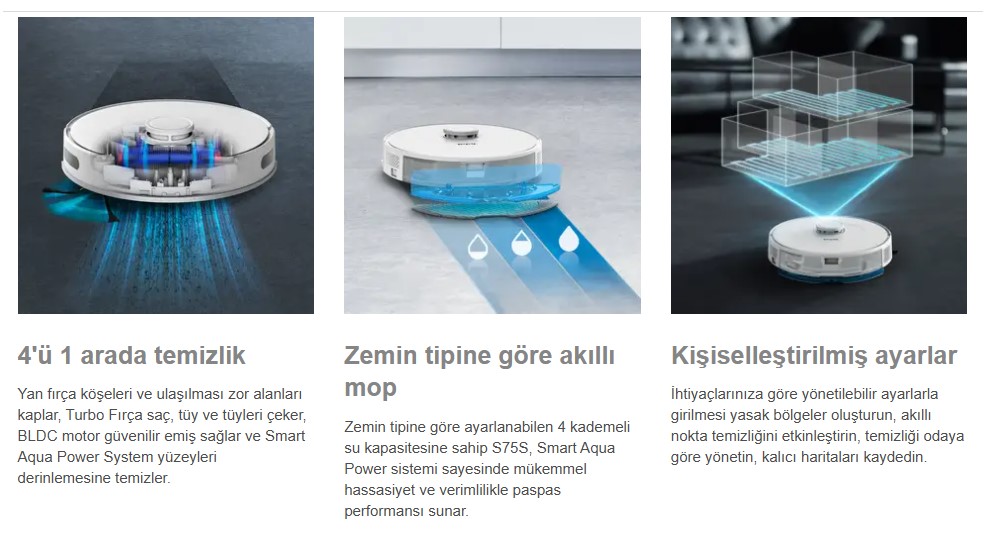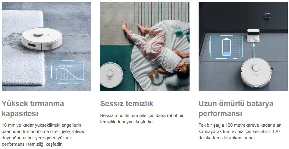 Tefal X-plorer Serie 75S Robot Süpürge, son teknolojinin sunduğu kolay ve modern temizlik deneyimiyle temizlenmeyen hiçbir nokta bırakmayan olağanüstü bir temizlik çözümüdür. Evinizde ihtiyaç duyduğunuz her noktaya gidebilen, zorlu alanları kolayca tırmanarak aşabilen ultra yüksek teknolojili robot süpürgeyi keşfedin: elektronik kontrol edilebilen mopu, geniş su tankıyla büyük alanlarda hijyen sağlayan Tefal X-plorer Serie 75 S, yüksek doğruluğa sahip navigasyona, gelişmiş lazer teknolojisine ve özelleştirilebilir temizlik deneyimi oluşturmanıza olanak sağlayan akıllı telefon uygulamasına sahiptir.