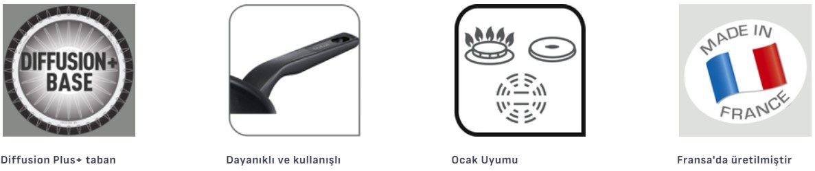 Dayanımı yüksek yapışmaz kaplaması, THERMO-SIGNAL:trade_mark: teknolojisi, homojen ısı yayılımı sağlayan özel difüzyon tabanı ve kolay temizlik sağlayan dış kaplamasıyla lezzetli ve sağlıklı tarifler hazırlayabilirsiniz.