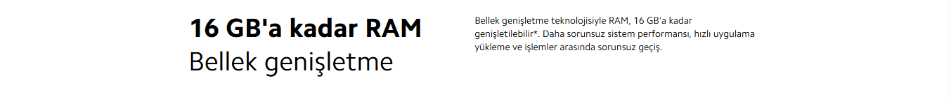 depolama alanını kaplar. Bellek genişletme özelliği yalnızca cihazınızda yeterli depolama alanı olduğunda kullanılabilir. RAM depolama kapasitesinin gerçek genişletilme miktarı, farklı modellerde değişiklik gösterir.*Şarj süresiyle